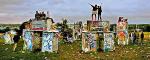 Glastonbury revellers welcomed the summer solstice dancing on top of a 'Stonehenge' of festival lavatories created by artist Banksy today. They celebrated the year's longest day after a rare dry night at the site in Pilton, Somerset, which is due to host 180,000 music fans at the weekend. Another 24,000 revellers gathered at the real Stonehenge to watch dawn break.