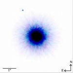 Gemini adaptive optics image of 1RSX J160929.1-210524 and possible ~8 Jupiter-mass companion. The image is a composite of J-, H- and K-band near-infrared images. All images obtained with the Gemini Altair adaptive optics system and the Near-Infrared Imager (NIRI) on the Gemini North telescope.