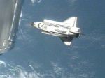 As it joins up in orbit with the International Space Station, space shuttle Endeavour performs a Rendezvous Pitch Manoeuvre, a complete end-over-end flip, so Expedition 23 crew members aboard the ISS can photograph the orbiter for any signs of damage it may have incurred during liftoff.