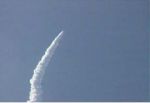 The United Launch Alliance booster, which stands about 12 stories tall, blasted off from Space Launch Complex-2 at 11:51 a.m., climbing into skies that earlier had shed a stubborn morning marine layer. Liftoff was delayed 13 minutes because of a battery problem, a spokesman said.