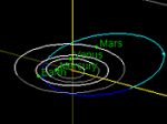 Astronomers have learned the asteroid swings around the sun every 2.2 years. It passes within 77 million milesof the sun and then streaks back into space, passing Mars' orbit and reaching a point about 241 million miles from the sun. The rocky body is 1.1 km (0.68 miles) in diameter, it has at least a couple large craters on its surface and it spins very fast - about once every 2.1 hours.