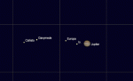 The Galilean moons of Jupiter (Io, Europa, Ganymede, and Callisto) are arranged in numerical order (beginning) at 10:30 UT, 20th January 2018.