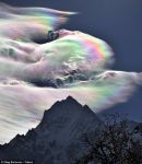 Some of the coldest temperatures on Earth brought a rare cloud formation to the skies over Antarctica, scientists said Tuesday. The so-called nacreous clouds were situated high in the stratosphere, requiring temperatures less than minus 176 degrees Fahrenheit. A weather balloon measured temperatures at minus 189 degrees Fahrenheit on the day pictured. A rare and spectacular cloud formation has been seen at the end of the polar night at Australia's Mawson station in Antarctica. Photographs taken by Renae Baker, a meteorological officer with the Australian Bureau of Meteorology at Mawson, on July 25 show delicate colours produced when the fading light at sunset passed through tiny water-ice crystals blown along on a strong jet of stratospheric air. Source