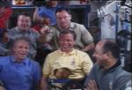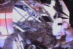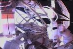 The astronauts did not see any obvious signs of damage to the reinforced carbon panels and proceeded to using the shuttle's robot arm to pull a new solar array truss segment from Discovery's cargo bay for handoff to the station arm. The spacer segment will be attached to the end of the station's main truss today.