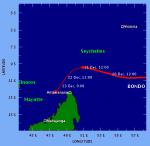 The tropical cyclone Bondo struck the Seychelles as an intense tropical cyclone at about 06:00 GMT on 21 December. Landfall was near 9.5 S, 51.5 E. Bondo brought 1-minute maximum sustained winds to the region of around 194 km/h. Wind gusts in the area may have been considerably higher.